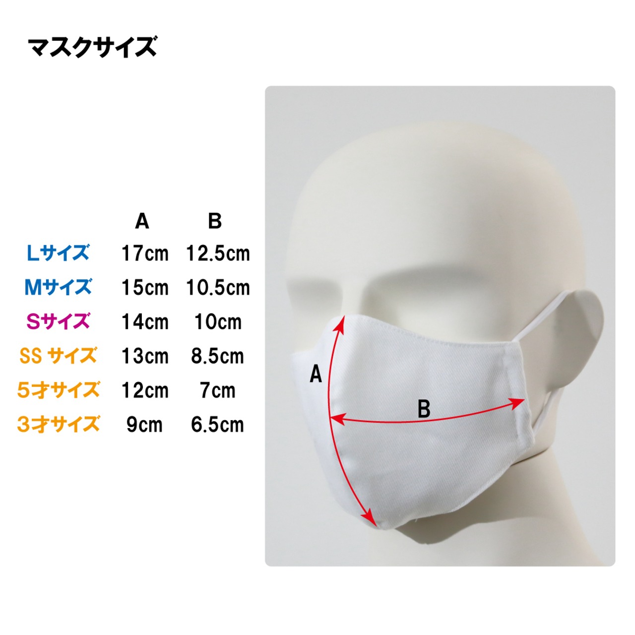 SS=レディース小さめ・ジュニア(10〜15才目安)/5才サイズ/3才サイズ